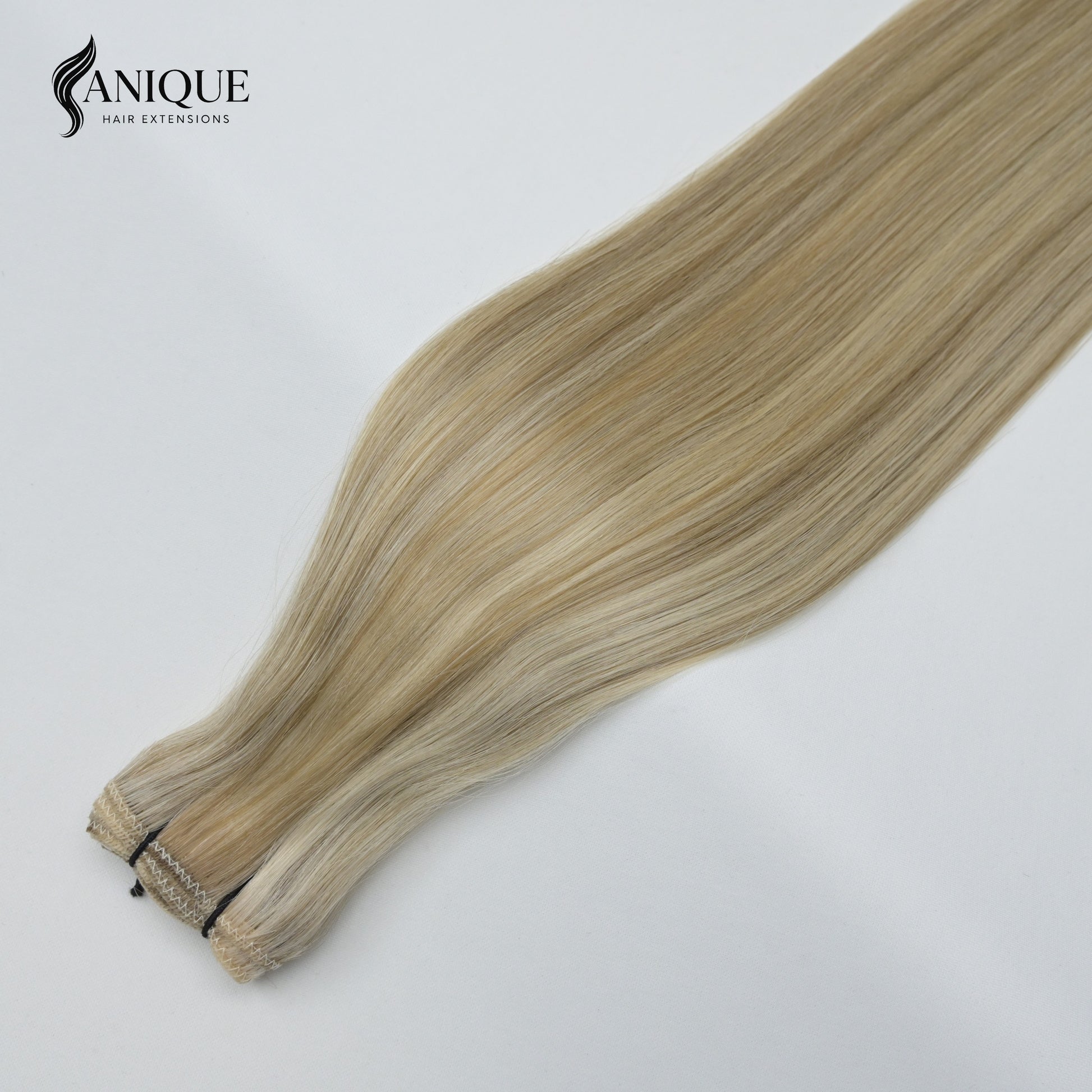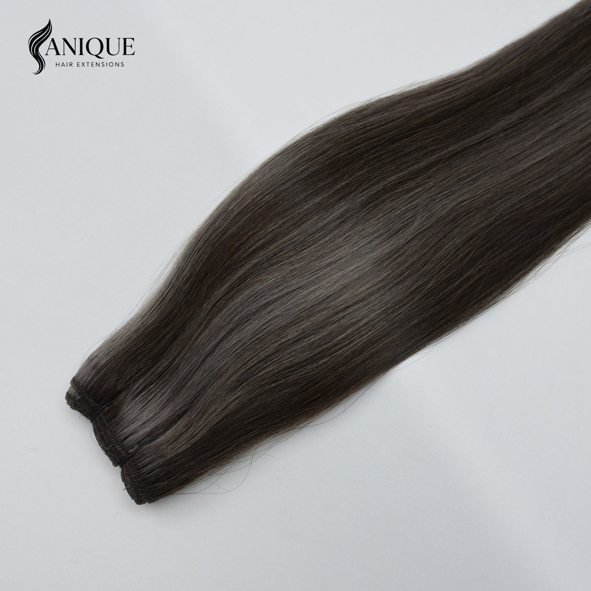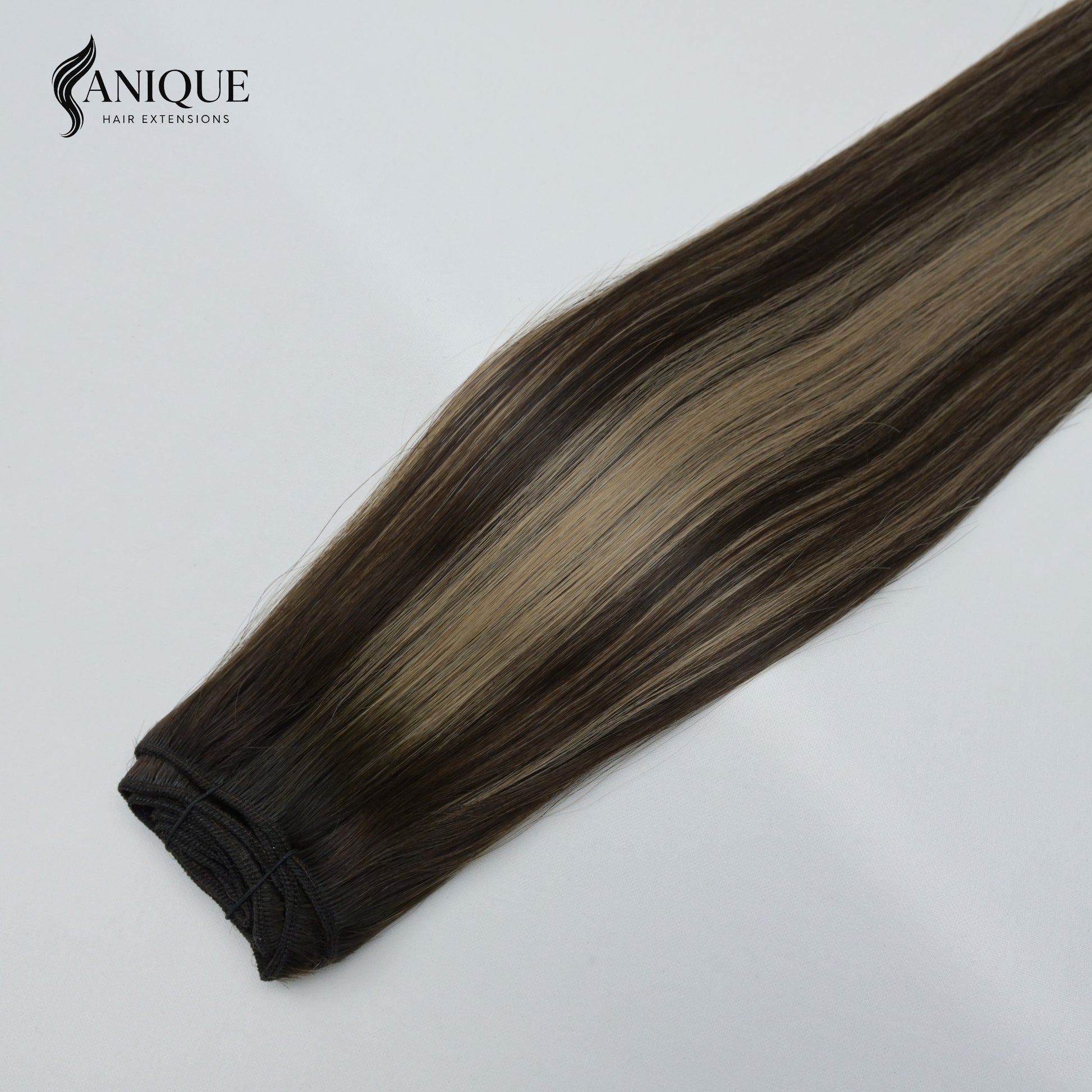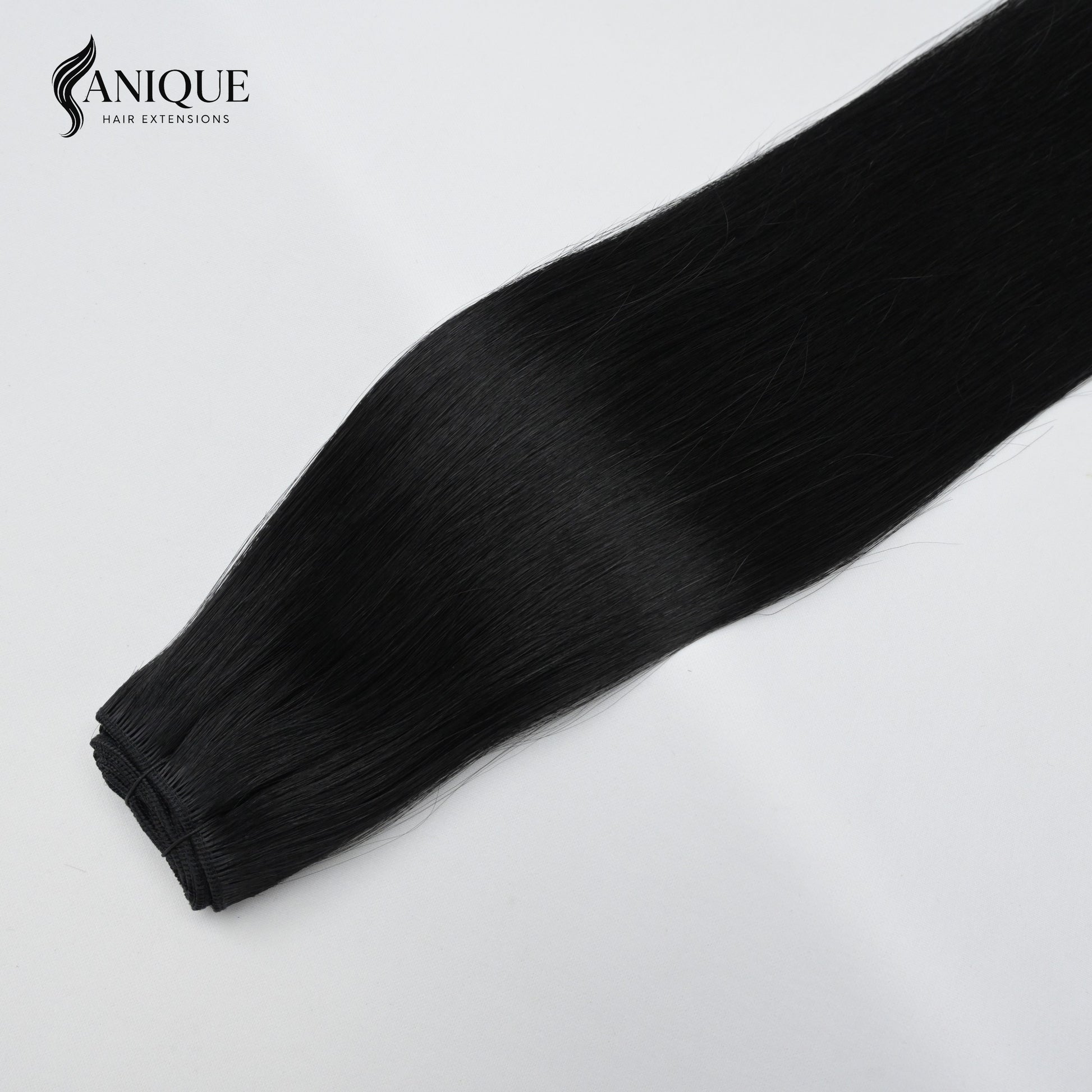 Product Description for Machine Weft: Our Anique Machine Wefts offer fullness, durability, and long-lasting quality for every install. Made from 100% human hair, these wefts provide maximum volume with a strong, secure track that can be cut to customize any look. Perfect for clients who want thick, luxurious hair with natural movement from root to end.